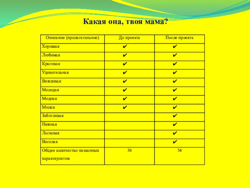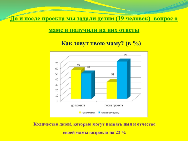 До и после проекта мы задали детям (19 человек) вопрос о маме и получили на них ответы