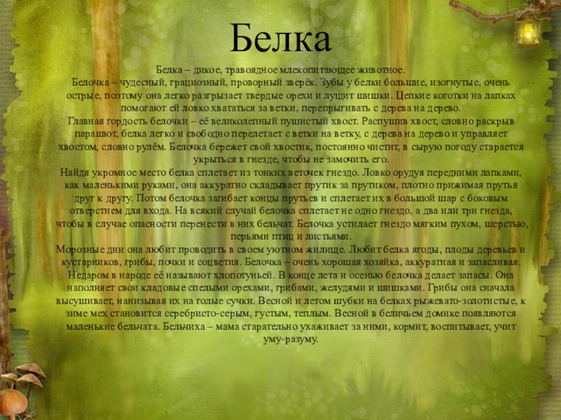 Белочка – чудесный, грациозный, проворный зверёк.