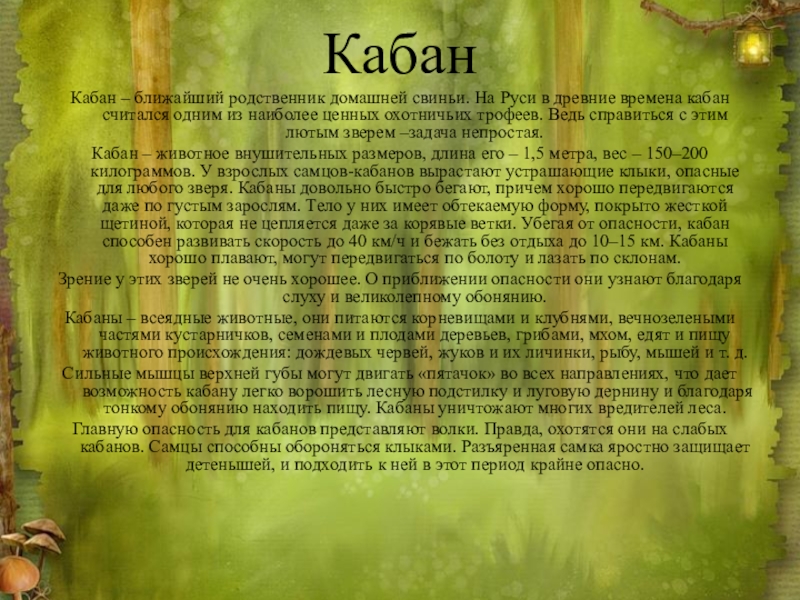 Слайд 17Кабан