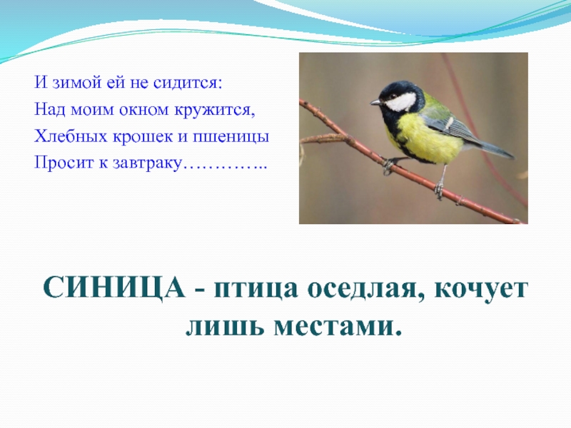 СИНИЦА - птица оседлая, кочует лишь местами.