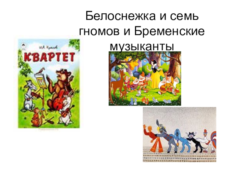 Слайд 21Белоснежка и семь гномов и Бременские музыканты