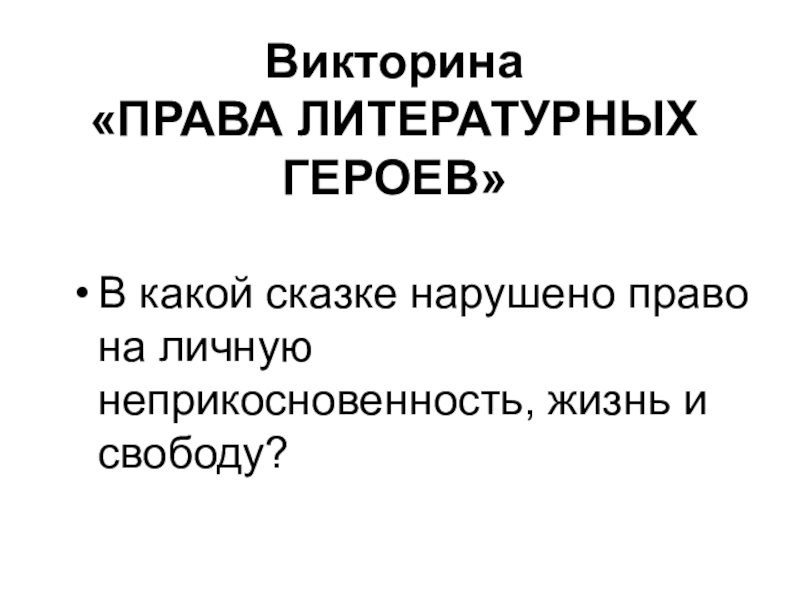 Слайд 14Какие литературные герои могли бы пожаловаться, что нарушено их право на