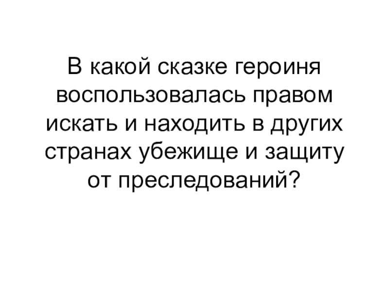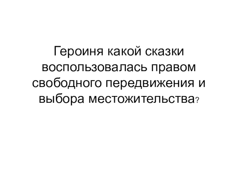 Слайд 16Героиня какой сказки воспользовалась правом свободного передвижения и выбора местожительства?