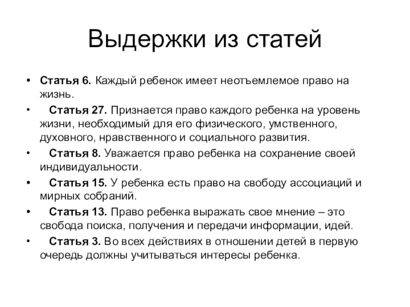 Статья 6. Каждый ребенок имеет неотъемлемое право на жизнь.