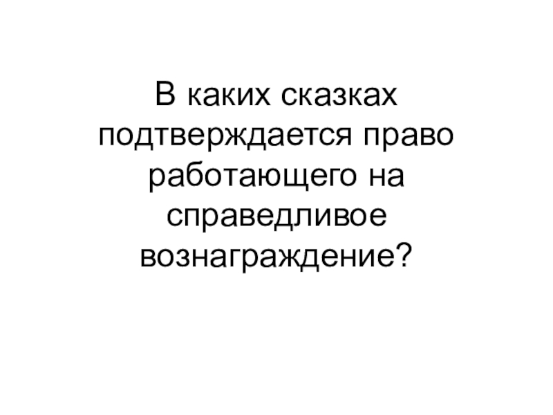Слайд 22В каких сказках подтверждается право работающего на справедливое вознаграждение?