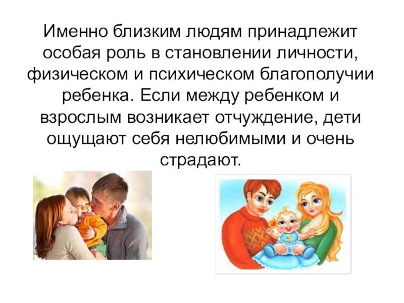 Слайд 24Именно близким людям принадлежит особая роль в становлении личности, физическом и