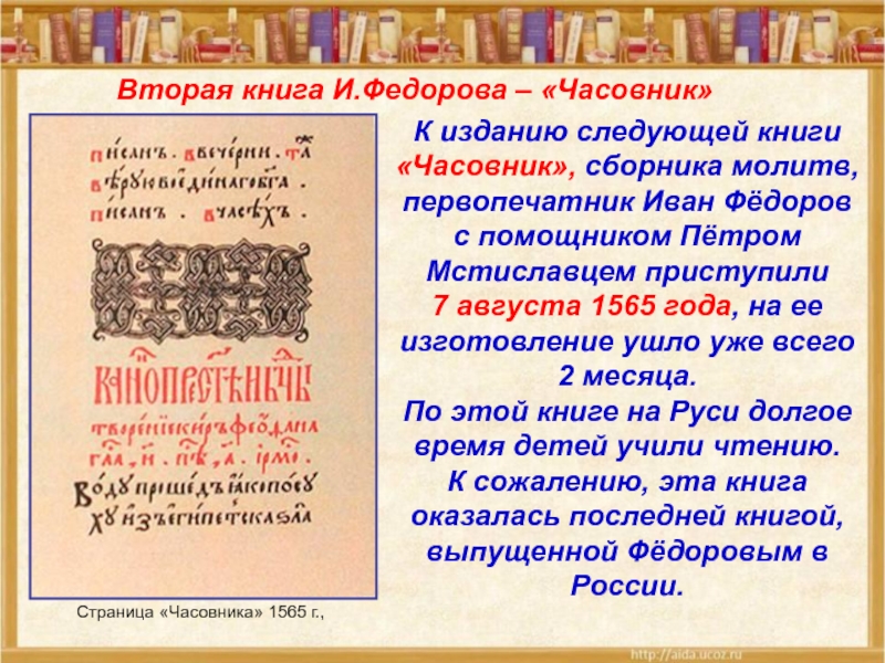 Вторая книга И.Федорова – «Часовник»