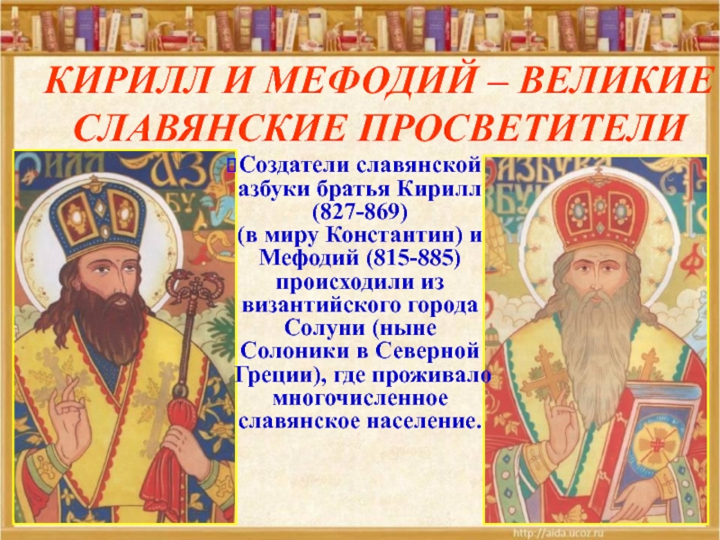 1.В каком городе родились братья Кирилл и Мефодий?