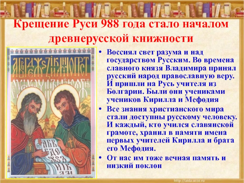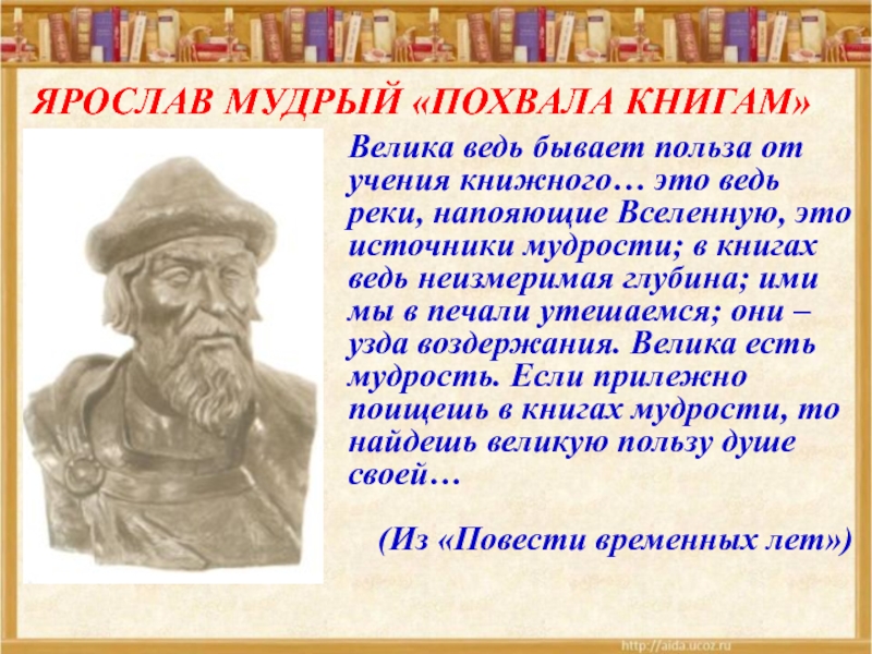 ЯРОСЛАВ МУДРЫЙ «ПОХВАЛА КНИГАМ»