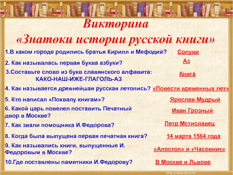 5. Кто написал «Похвалу книгам»?