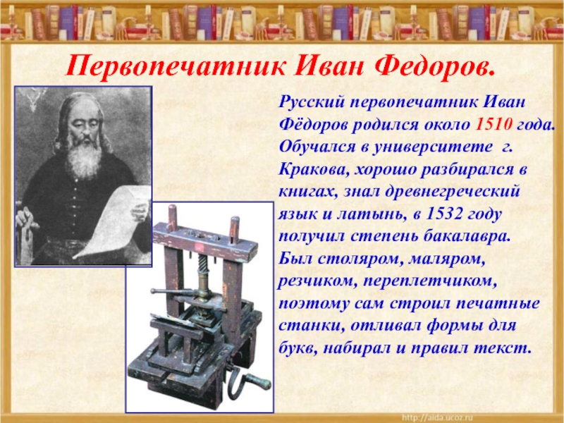Первопечатник Иван Федоров.