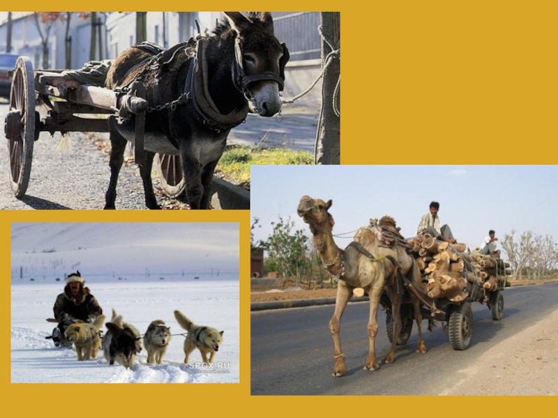 приручил лошадей, собак, оленей, верблюдов и ослов, с их помощью перевозили людей и грузы. Затем животных догадались запрягать в тележки или повозки – ведь так можно было перевезти больше пассажиров или товаров.