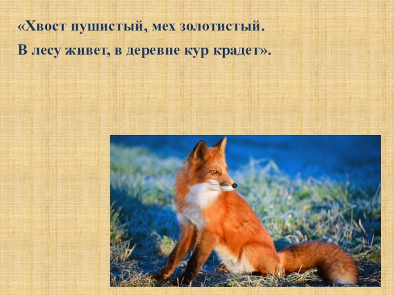 «Хвост пушистый, мех золотистый.В лесу живет, в деревне кур крадет».