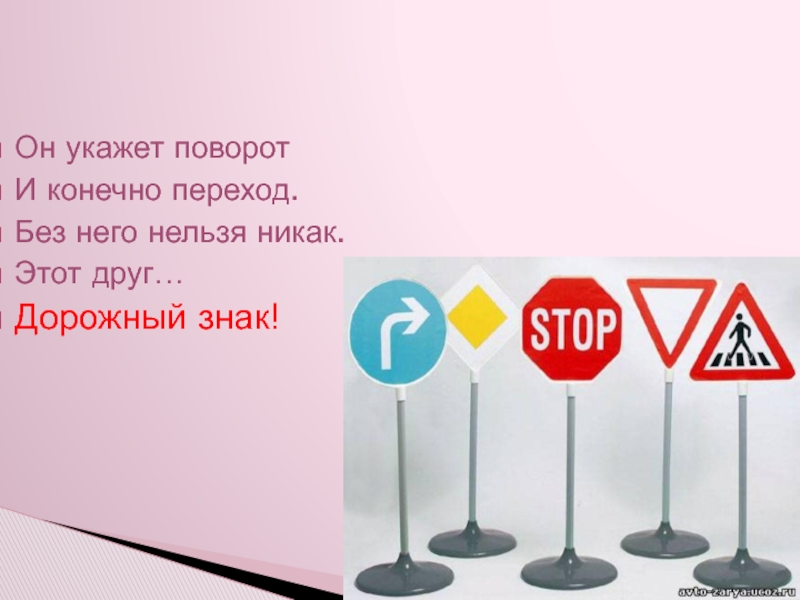 Он укажет поворотИ конечно переход.Без него нельзя никак.Этот друг…Дорожный знак!