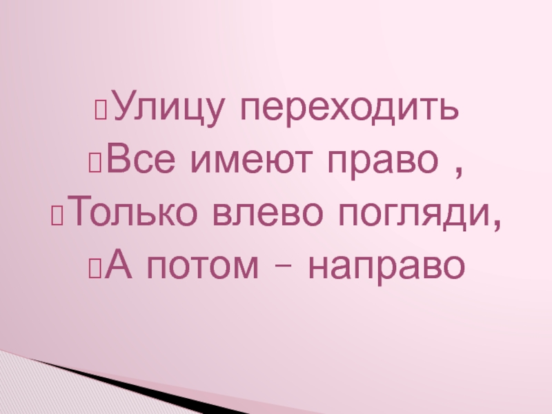 Улицу переходитьВсе имеют право ,Только влево погляди,А потом – направо