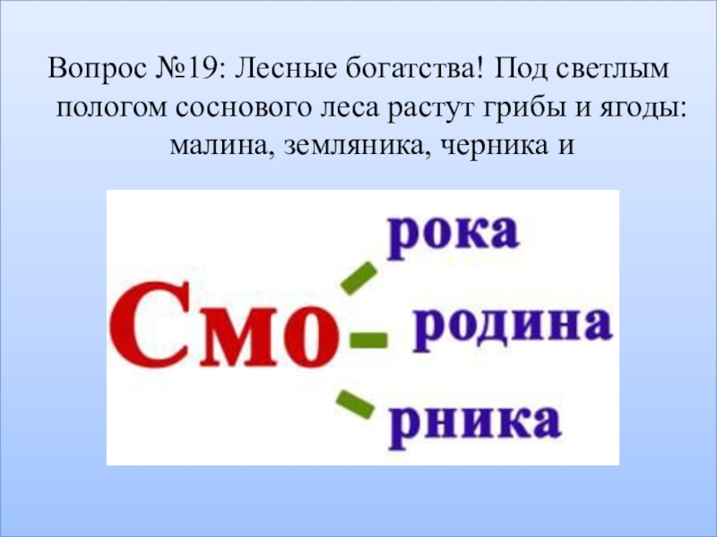 Вопрос №19: Лесные богатства! Под светлым пологом соснового леса растут грибы