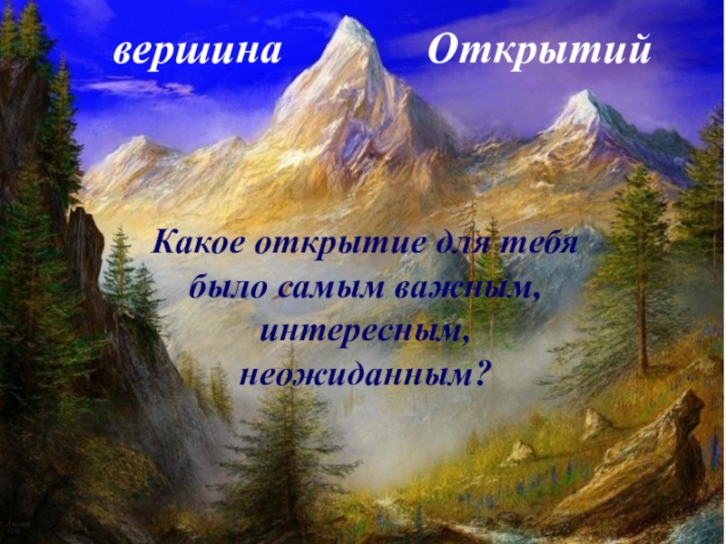 вершина       ОткрытийКакое открытие для тебя было самым важным, интересным, неожиданным?