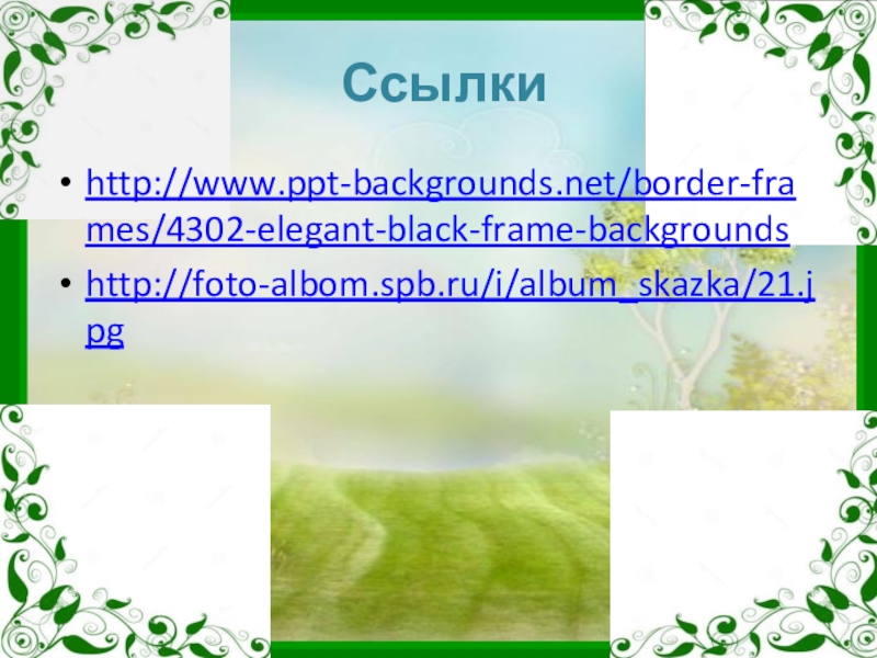 Ссылкиhttp://www.ppt-backgrounds.net/border-frames/4302-elegant-black-frame-backgrounds http://foto-albom.spb.ru/i/album_skazka/21.jpg