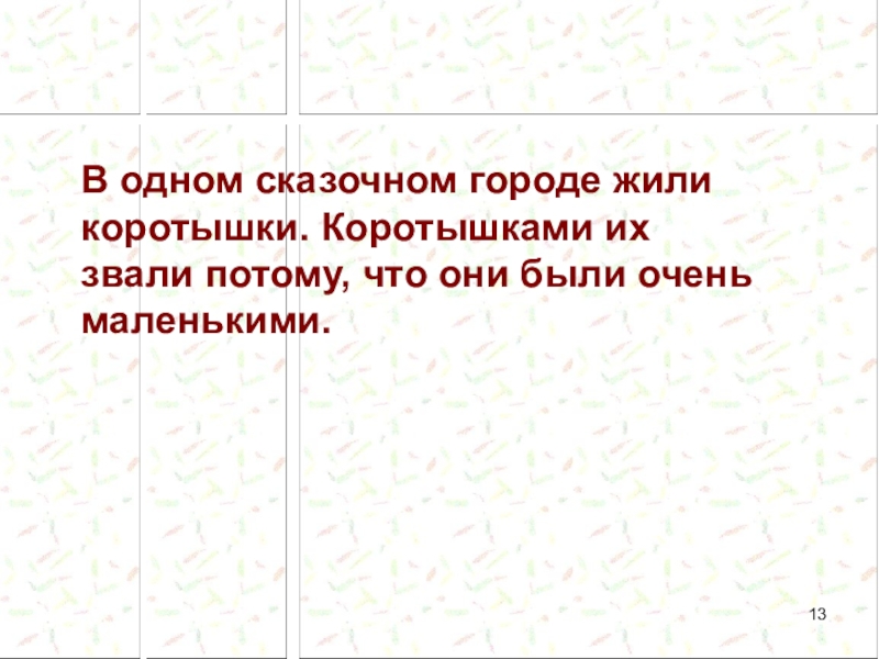 Слайд 13В одном сказочном городе жили коротышки. Коротышками их звали потому, что