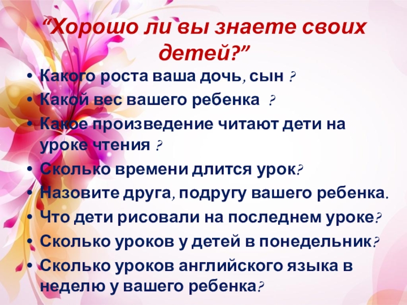 Слайд 15 “Хорошо ли вы знаете своих детей?”
