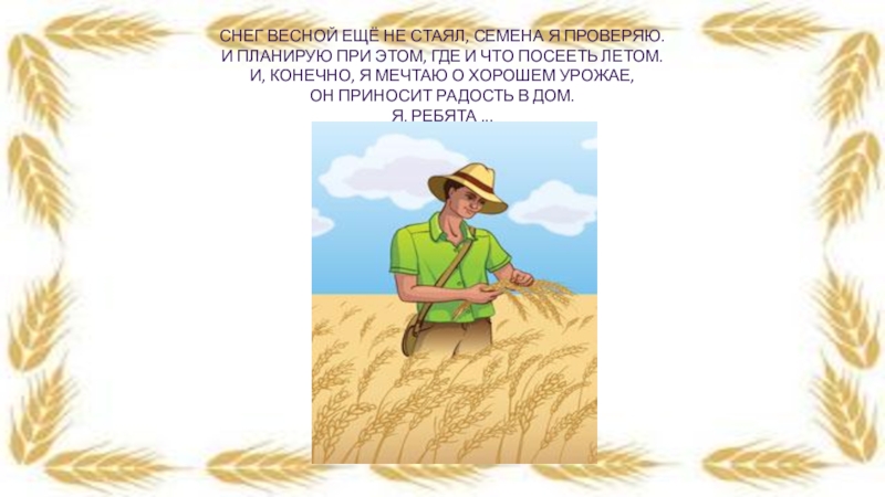 Где и что посееть летом. И, конечно, я мечтаю О хорошем урожае, Он приносит радость в дом. Я, ребята ...