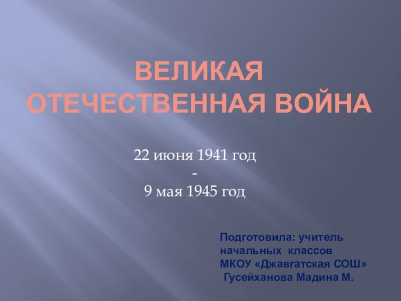 Великая Отечественная война22 июня 1941 год -9 мая 1945 годПодготовила: учитель начальных классовМКОУ «Джавгатская СОШ» Гусейханова Мадина