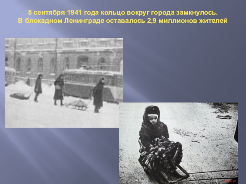 8 сентября 1941 года кольцо вокруг города замкнулось.В блокадном Ленинграде оставалось 2,9 миллионов жителей