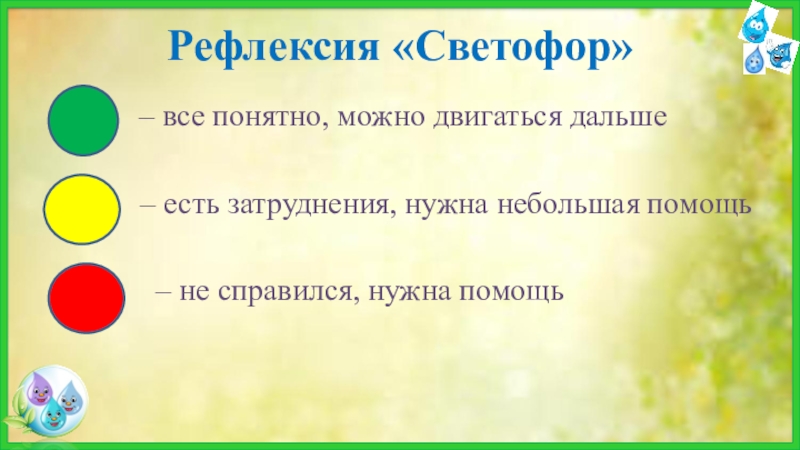 Рефлексия «Светофор»        – все понятно, можно двигаться дальше