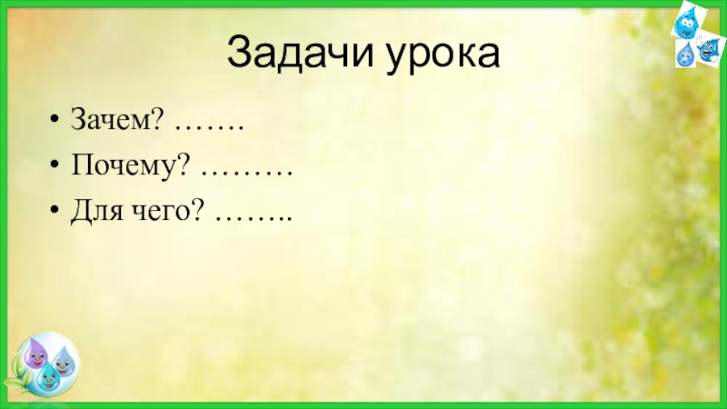 Задачи урокаЗачем? ……. Почему? ………Для чего? ……..