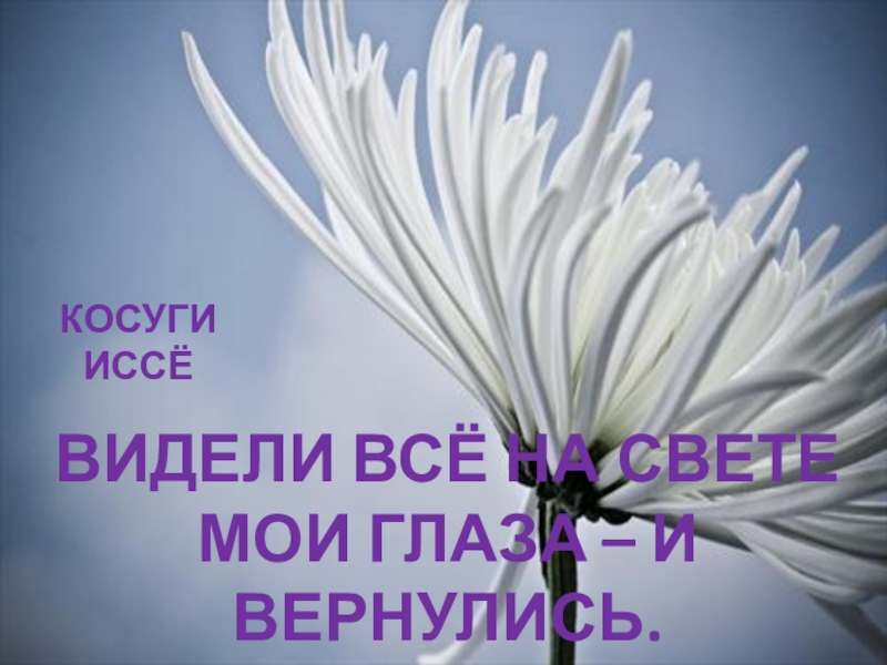 ВИДЕЛИ ВСЁ НА СВЕТЕ МОИ ГЛАЗА – И ВЕРНУЛИСЬ.К ВАМ, БЕЛЫЕ ХРИЗАНТЕМЫ.КОСУГИ ИССЁ