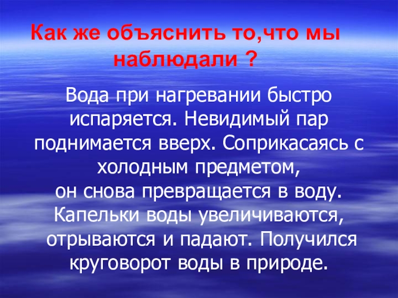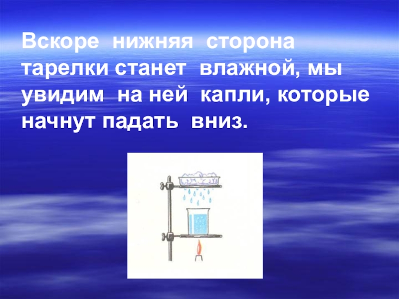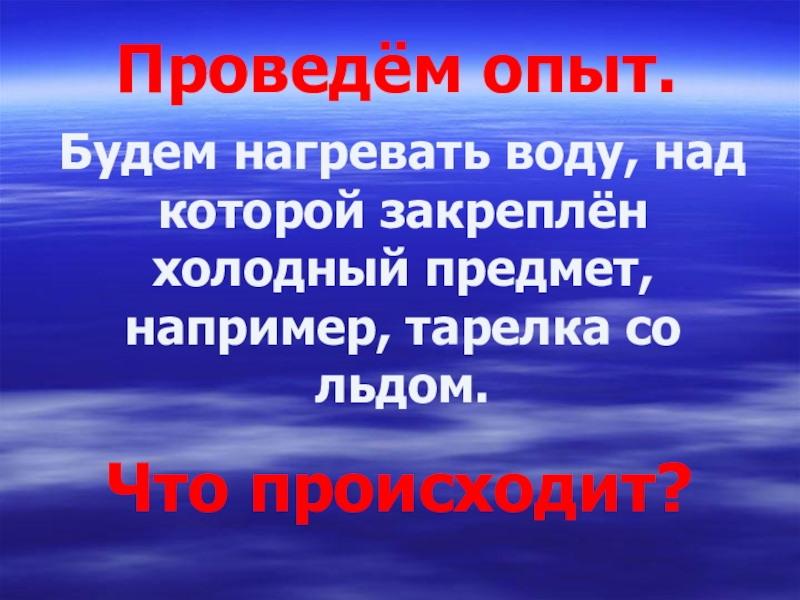 Будем нагревать воду, над которой закреплён холодный предмет, например, тарелка со льдом.