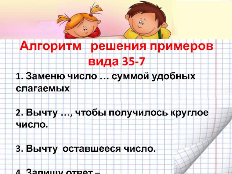 Алгоритм решения примеров вида 35-7