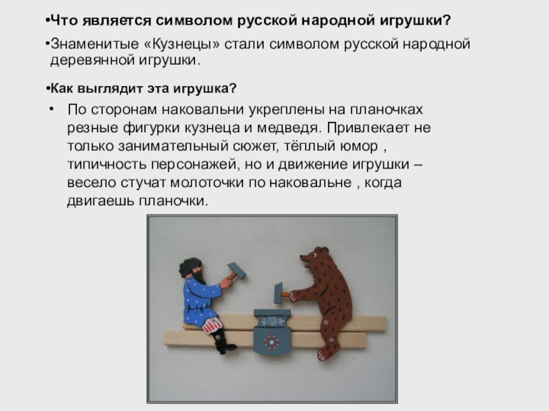 Знаменитые «Кузнецы» стали символом русской народной деревянной игрушки.