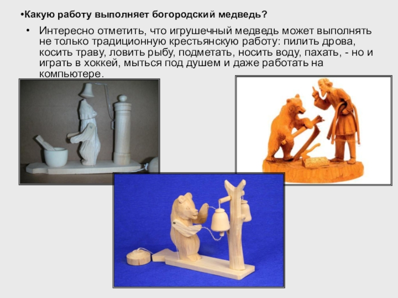 Какую работу выполняет богородский медведь?