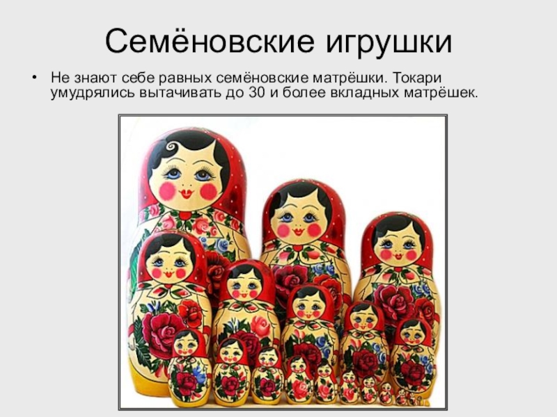 Слайд 5Семёновские игрушки