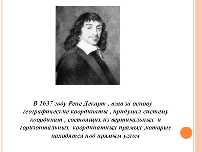 Слайд 7В 1637 году Рене Декарт , взяв за основу географические координаты