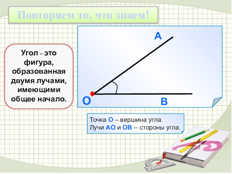 Угол – это фигура, образованная двумя лучами, имеющими общее начало.
