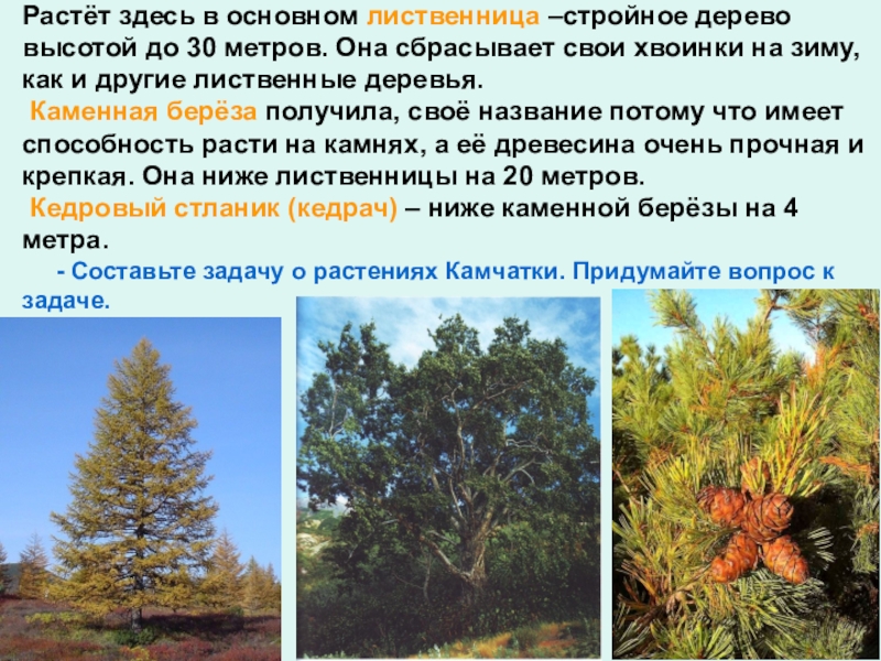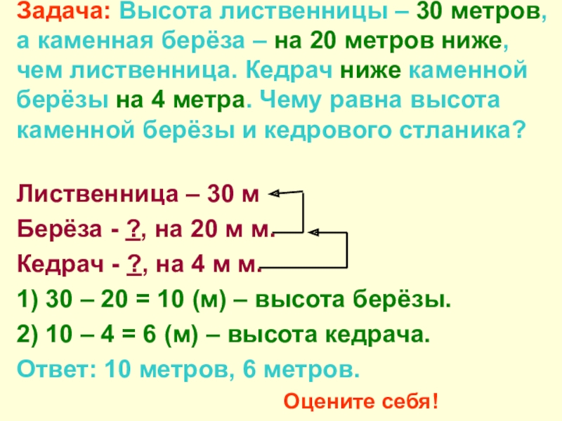 2) 10 – 4 = 6 (м) – высота кедрача.