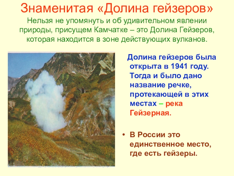 В России это единственное место, где есть гейзеры.