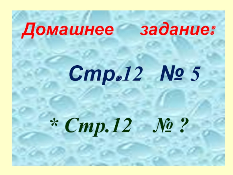 Домашнее   задание:   Стр.12  № 5* Стр.12  № ?