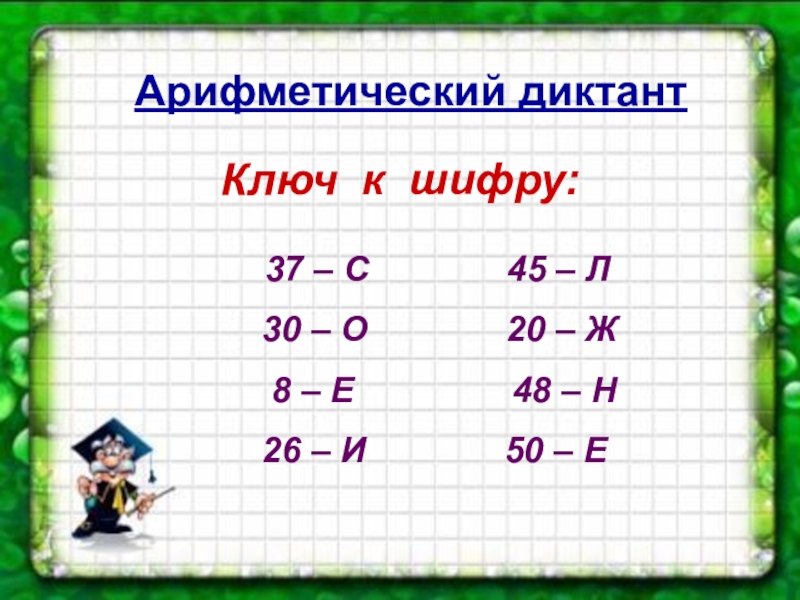 Арифметический диктантКлюч к шифру:   37 – С       45 –