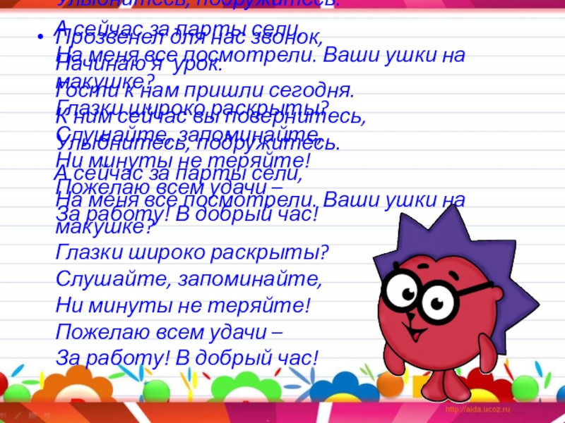 А сейчас за парты сели,