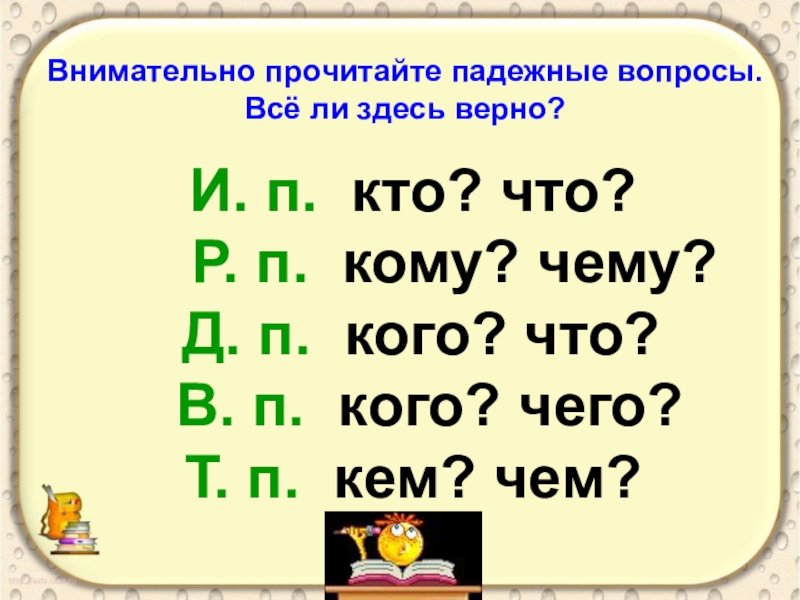 Внимательно прочитайте падежные вопросы.
