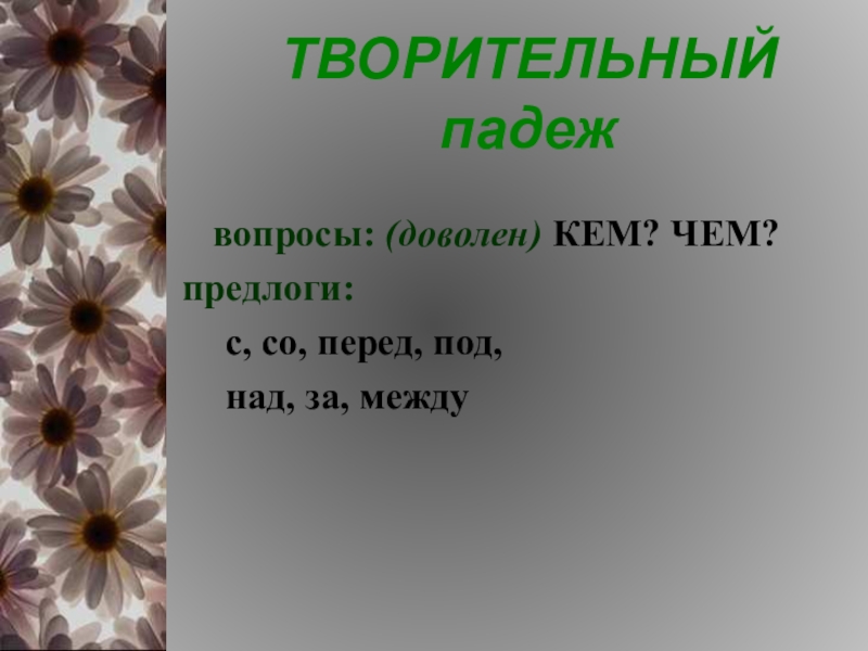вопросы: (доволен) КЕМ? ЧЕМ?