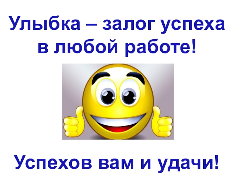 Улыбка – залог успеха в любой работе!Успехов вам и удачи!