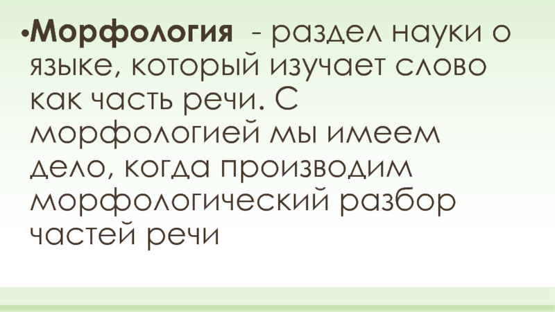 речи. С морфологией мы имеем дело, когда производим морфологический разбор частей речи