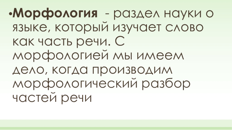 речи. С морфологией мы имеем дело, когда производим морфологический разбор частей речи