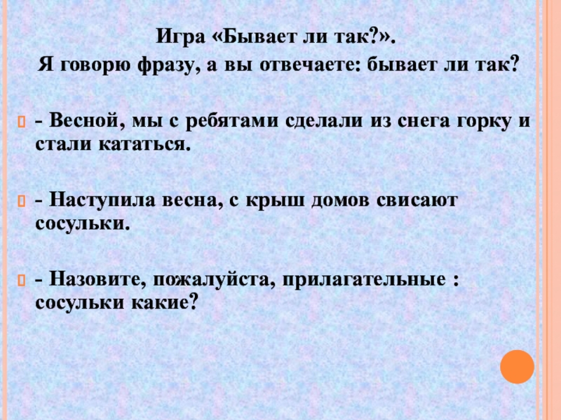 - Назовите, пожалуйста, прилагательные : сосульки какие?