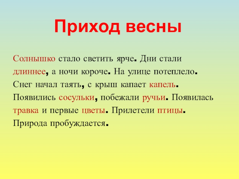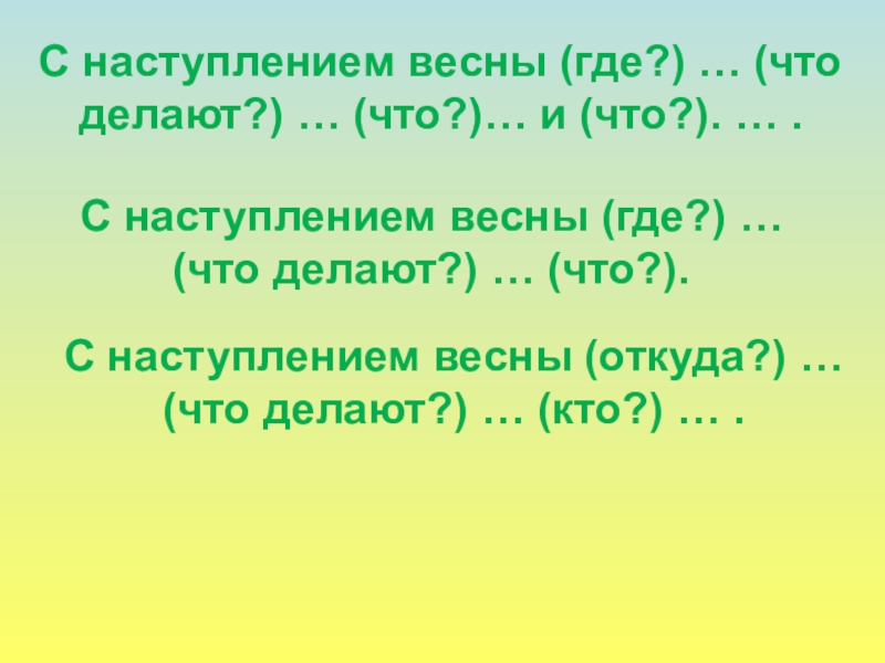 С наступлением весны (где?) … (что делают?) … (что?).