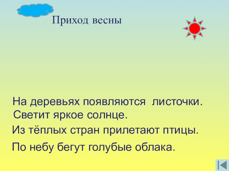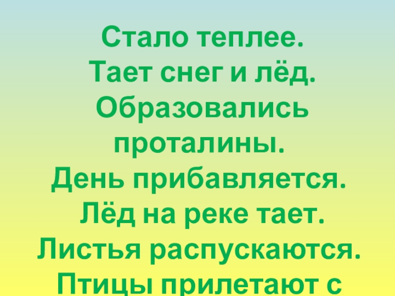 Из тёплых стран прилетают птицы.